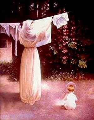 María es el cáliz viviente que llevó a Jesús hecho hostia en su vientre. María albergó en su seno a Aquel a quien ni los cielos ni la tierra pueden contener. María le dió la vida a Quien es La Vida. María dió a luz a Quien es La Luz del Mundo. María alimento con sus pechos virginales a Quien es El Pan Vivo bajado del cielo. María le enseñó a dar los primeros pasos a Quien es El camino. María explicó las verdades de la Fe a Quien es La Verdad. María le enseñó a balbucear las primeras sílabas a Quien es El Verbo de Dios. María en Caná de Galilea le "adelanta la hora” a Quien es Eterno....a Quien es El Alfa y la Omega. Podremos medir el valor y la hermosura de ésta Madre? Ese Cristo agonizante, en testamento postrero nos dice: “Hijo, he ahí a Tu Madre”....y desde ese momento María nos da a luz en el doloroso parto del Calvario. Desde ese momento, el camino más directo para llegar a Jesús, ¡pasa por María! (Texto de Raúl Nessier - Santa Fe - Argentina) | |